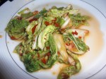 Kimchi is a Korean condiment that is commonly served as a side dish with meals. Traditional Kimchi is fermented which can be time consuming but this recipe can be used right away. It is deliciously spicy and amazingly satisfying. Feel free to adjust the spice to your taste. You can also use it to mix into brown rice, put in soups or stews, top a nice grass fed steak, etc.