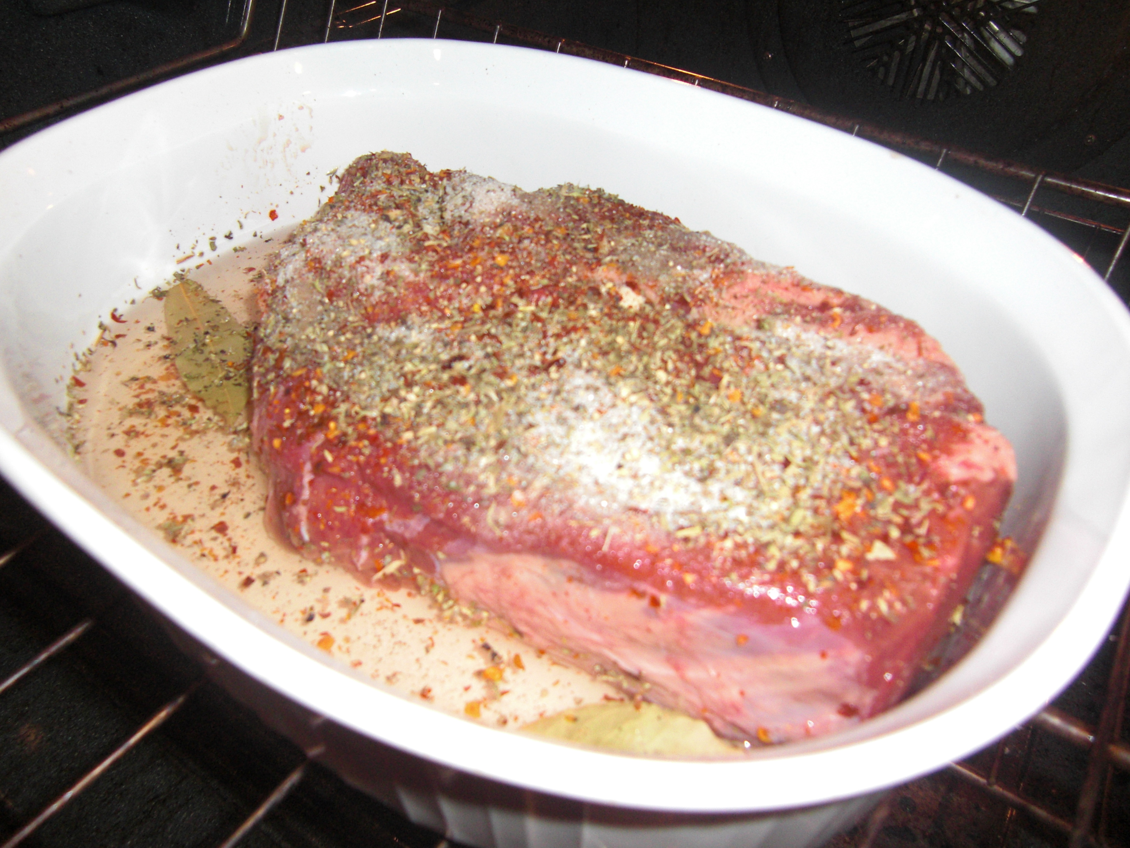Here is a great recipe for a spicy roast. It is great for entertaining or a great substitution for corned beef (usually contains an excessive amount of nitrites) on St. Patrick’s Day. This roast is great to take along and make terrific leftovers.