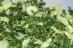 Wash bok choy and cut of the hard end and discard. Slice the remaining stalks and leaves into 1″ strips. Heat oil in a skillet, add bok choy, ginger, salt and pepper and sautee until tender and wilted.