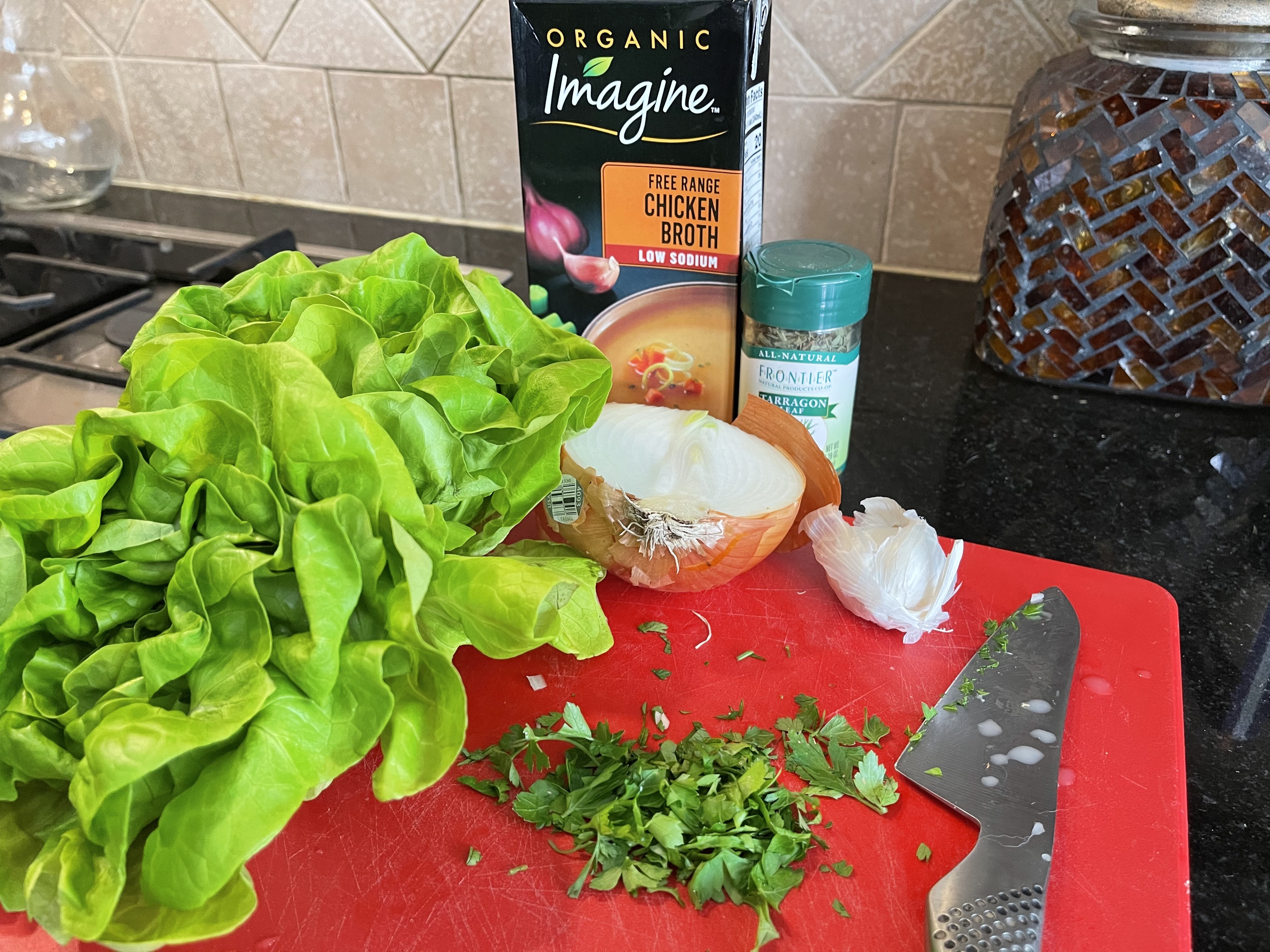 This is a delicate, French tasting soup that is quick and easy and a great way to use up extra lettuce.